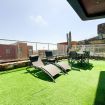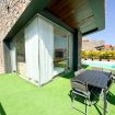 Outside, the villa boasts a charming private garden, beautifully landscaped with green areas, palm trees, and inviting spaces to relax outdoors. There is also a spacious terrace with sun loungers and an outdoor dining area — perfect for making the most of the island’s privileged climate.